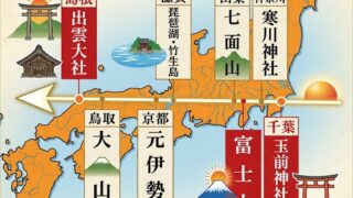レイラインとは何か?日本列島を貫く「ご来光の道」を地図で解説。玉前神社・寒川神社・富士山・七面山・竹生島・元伊勢・大山・出雲大社を結ぶ神秘のライン。