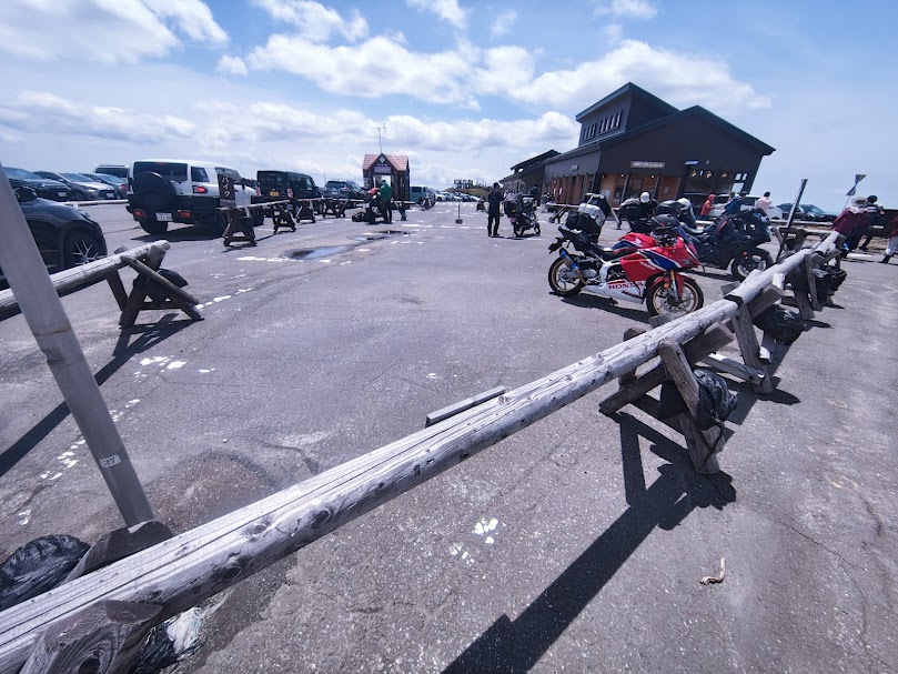 八幡平山頂レストハウスから100mほど東へ下ったところに岩手県側の駐車場がある。