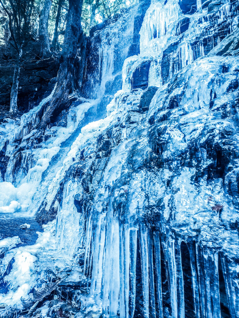 私が訪れた1月13日も、滝の流れが氷の造形となり、