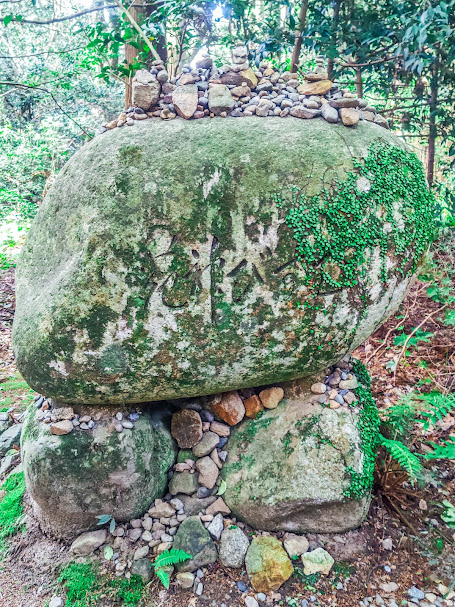 しかもよく見ると、2つのいびつな形をした石の上に不安定な状態で鎮座している。